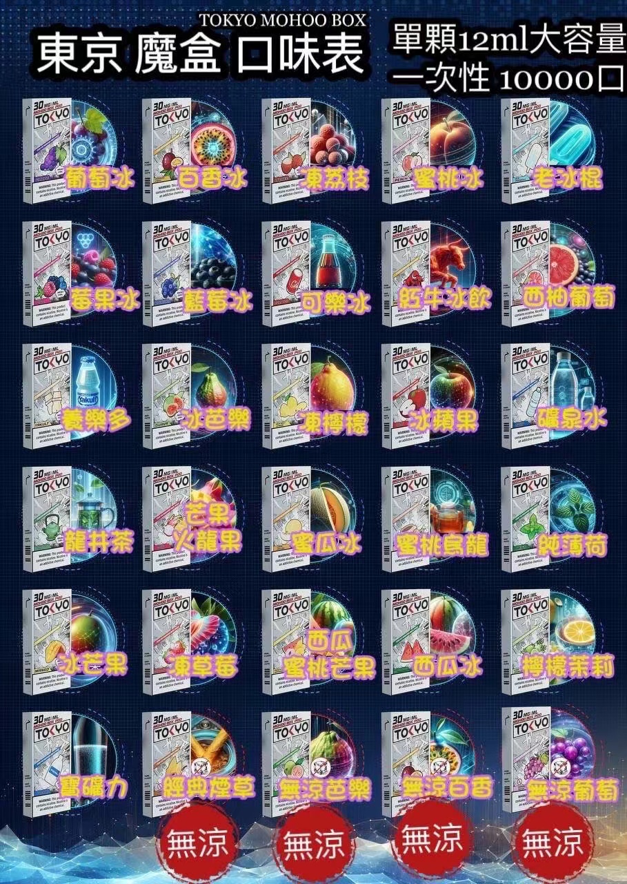 熱門東京魔盒電子煙彈口味推薦🔥:芒果火龍果、西瓜、涼草莓、烏龍茶、鐵觀音、綠豆冰沙、麥根沙士、雪碧。